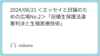 エッセィ・コラム2024/08/21 <エッセイと討論のための広場No.2>「旧優生保護法違憲判決と生殖医療技術」