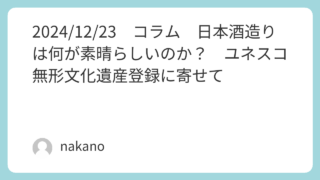エッセィ・コラム2024/12/23 コラム 日本酒造りは何が素晴らしいのか? ユネスコ無形文化遺産登録に寄せて