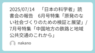 「日本の科学者」読書会2025/07/14 「日本の科学者」読書会の報告 6月号特集「原発のない社会づくりのための検証と展望」/7月号特集「中国地方の鉄路と地域公共交通のこれから」