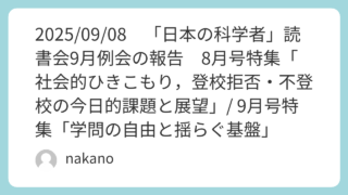 「日本の科学者」読書会2025/09/08 「日本の科学者」読書会9月例会の報告 8月号特集「社会的ひきこもり,登校拒否・不登校の今日的課題と展望」/ 9月号特集「学問の自由と揺らぐ基盤」