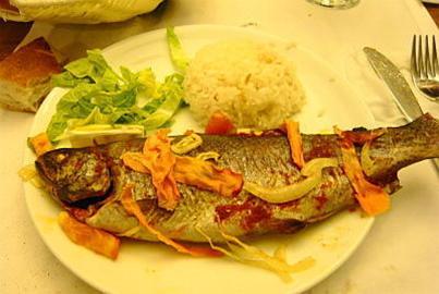 マス料理は川沿いの地域で有名とのことですが,近年は養殖が盛んで,我々の様な観光客の昼食に出されました.