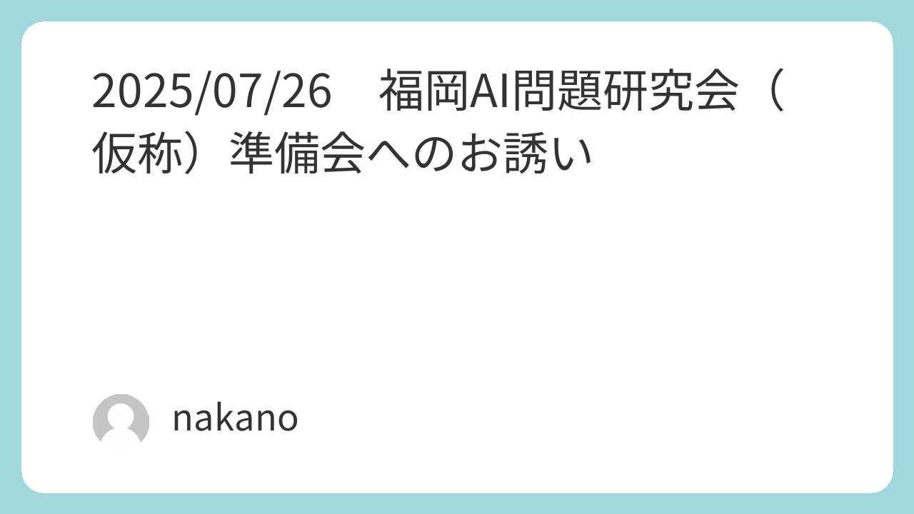 2025/07/26 福岡AI問題研究会(仮称)準備会へのお誘い