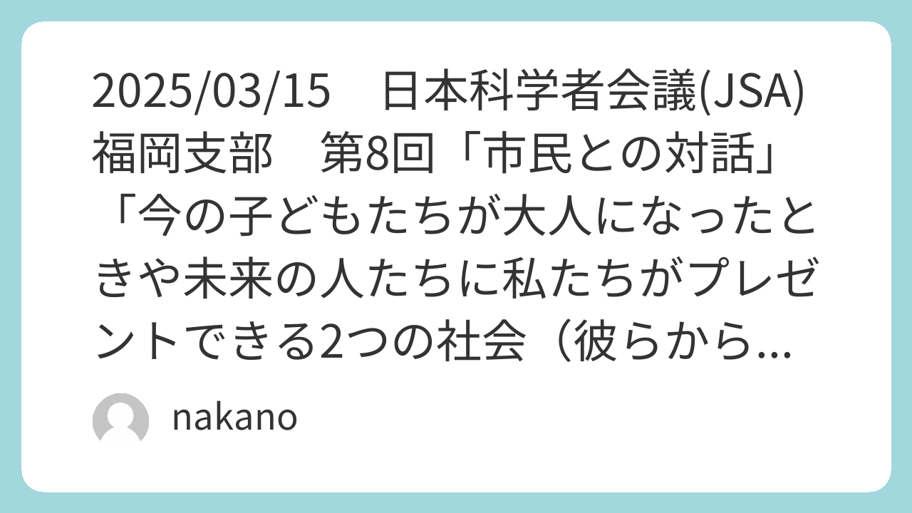 では,どうしたら避けられるのでしょう。実は,「避ける道」は単に危機を避けるだけではありません。これまでとは全く異なる新しい社会を作る道でもあるのです。そして,我々は彼らから称賛されるでしょう。どちらを選択したいですか?このようなことをみんなで考えていきます。
