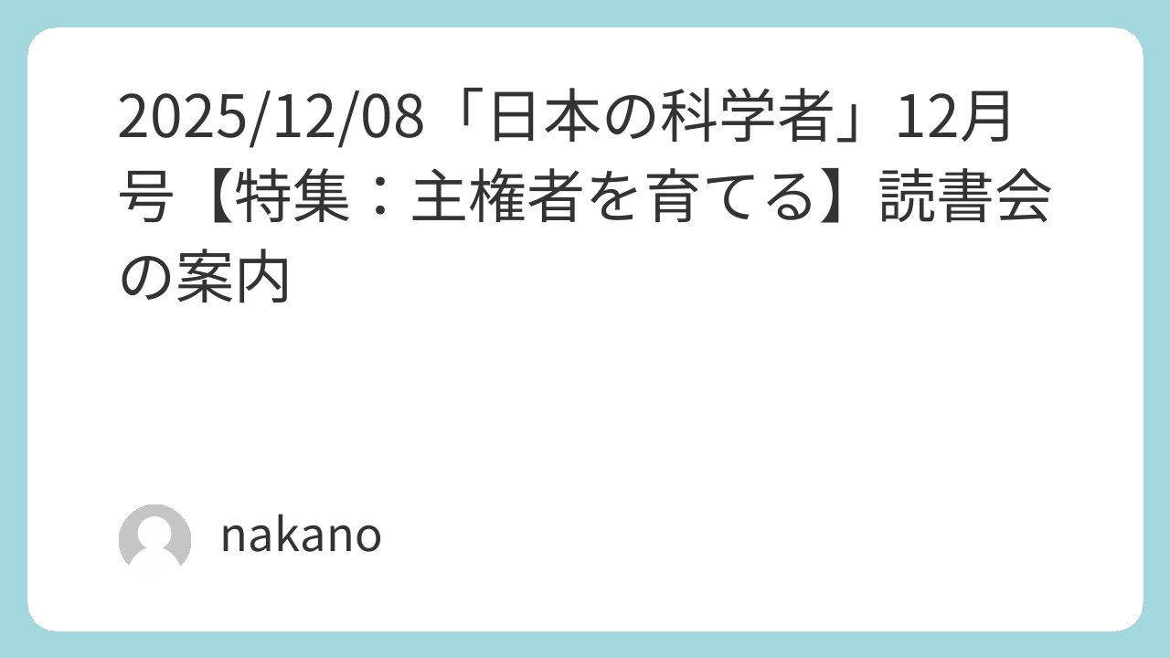 2025/12/08「日本の科学者」12月号【特集:主権者を育てる】読書会の案内