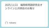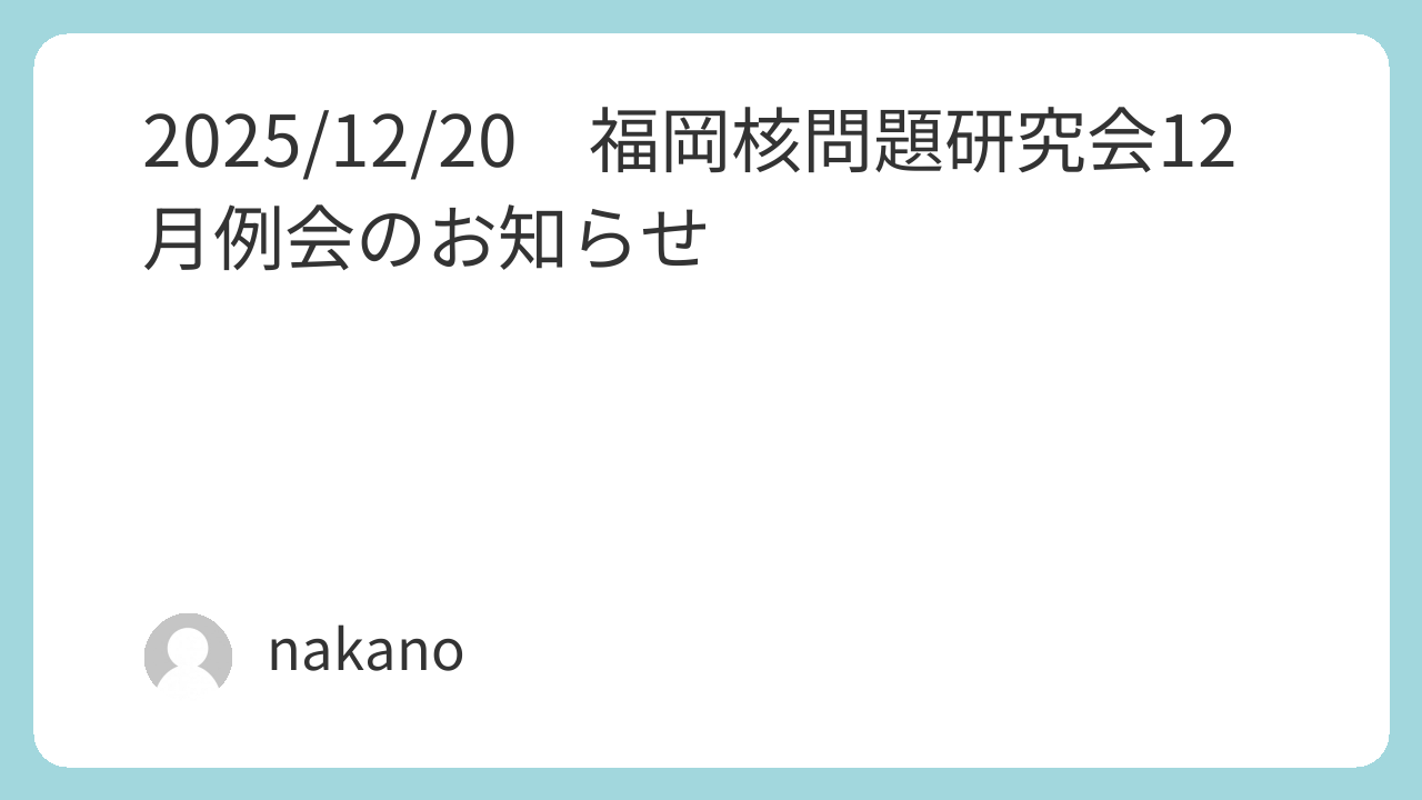 福岡核問題研究会12月例会を以下の要領で開催しますので、ふるってご参加下さい。