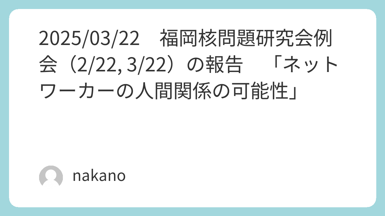 2025/03/22 福岡核問題研究会例会(3/22)の報告 「ネットワーカーの人間関係の可能性」