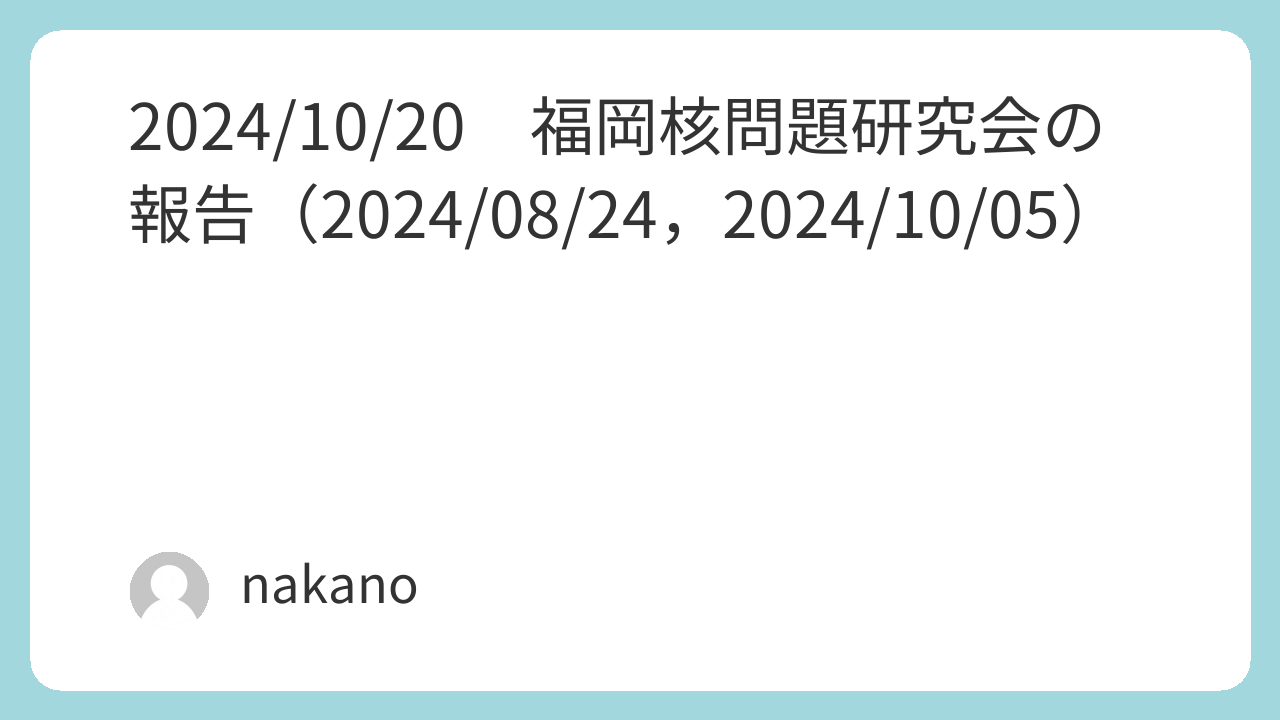 <福岡核問題研究会9月例会>(日程調整で開催が10月にずれ込んだ)