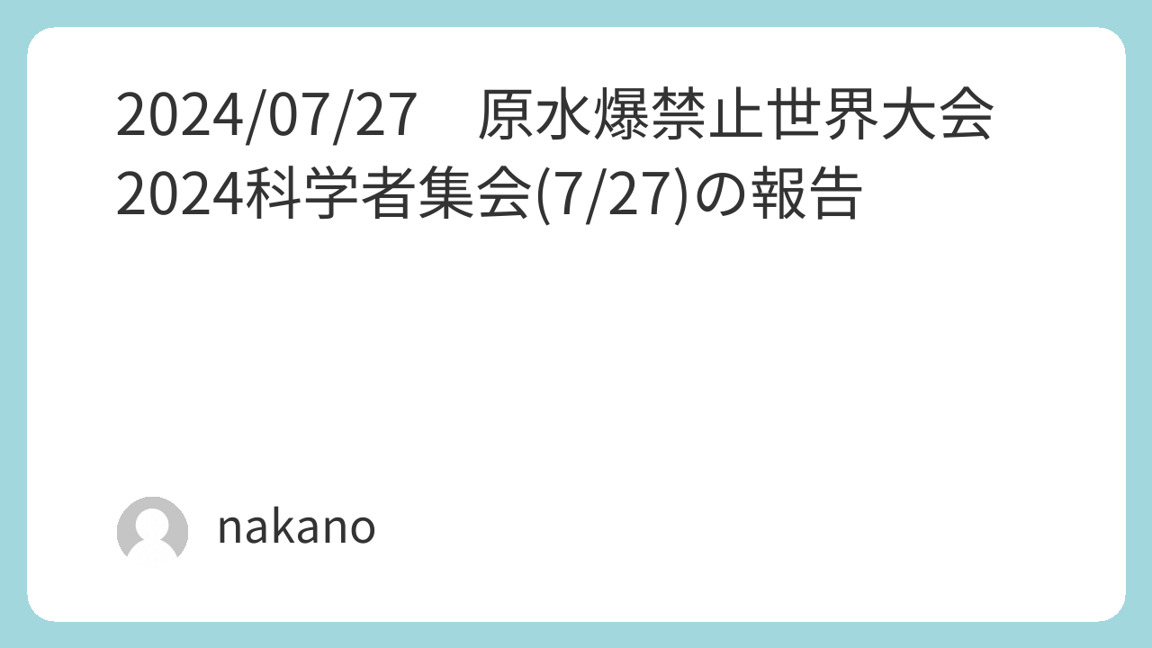今年の原水爆禁止世界大会・科学者集会は「ビキニ被災 70 年から被爆 80 年へ 核兵器禁止条約への日本政府の参加を求めて」をテーマに、7月27日、静岡大学の対面会場とオンライン参加をハイブリッドして開催されました.集会では,70年前のビキニ水爆実験の被災を中心とした2つの講演と「ビキニ被災 70 年から被爆 80 年へ ~非核日本キャンペーンの意義~」と題した原水爆禁止静岡県協議会理事長・木藤 功氏の講演があり,参加者50余名による討論,「原水爆禁止世界大会 2024 科学者集会アピール」の採択が行われました.また,集会の前後には動画「焼津市歴史民俗資料館 『第五福竜丸被災70年特別展』を訪れて ~静岡大学生 2 人が学芸員とともに第五福竜丸被災について学ぶ~」の放映も行われました.